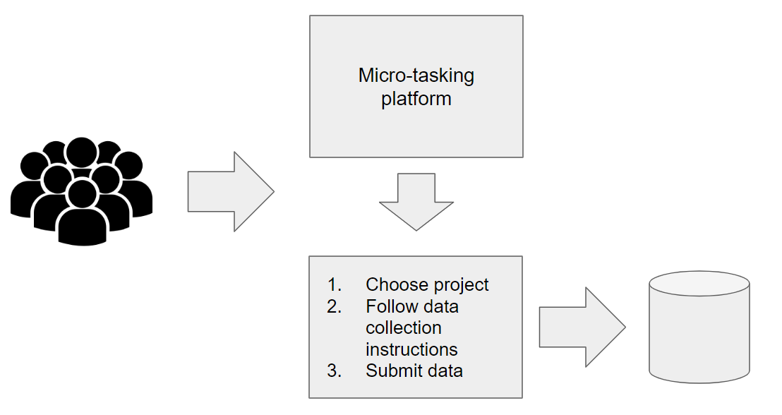 As a personal project, I developed a web interface that integrates with a micro-tasking platform similar to AWS Mechanical Turk. Typically, these platforms are used to hire individuals for specific tasks such as labeling images for image recognition or completing surveys. Workers receive rewards for each task they complete, with each task usually taking no more than five minutes. So, I've listed my own “web data collection” task on one of these platforms. Through the platform, users access my interface, where they are provided with instructions on the data I need them to collect—whether it's a section of a webpage, a screenshot, or a bearer token that can be used for subsequent automated scraping. After submission, users are rewarded for completing the task, and all payments are handled by the micro-tasking platform.